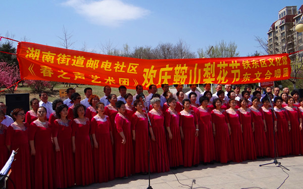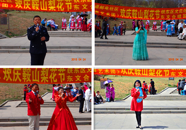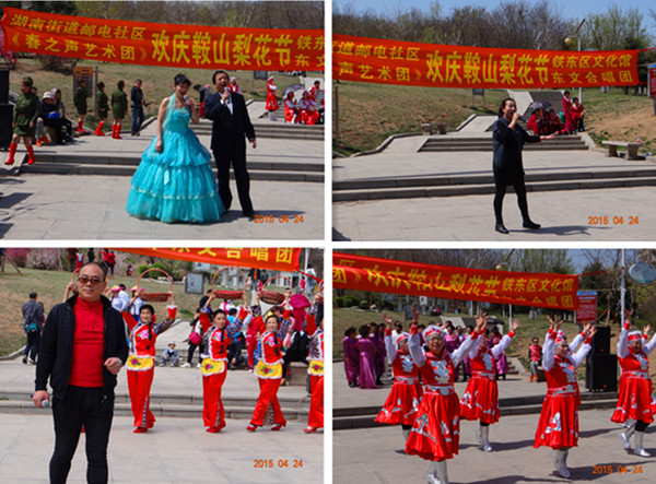 百姓才藝網(wǎng)訊(記者李光) 4月24日,在喜迎2015遼寧踏青賞花季和鞍山千山梨花節(jié)到來之際,在鞍山市湖南公園滿山盛開雪梨花的鴿子山下,由《鞍山旅游》編輯部、鐵東區(qū)文化館、湖南街道辦事處、聯(lián)合舉辦的歌詠千山梨花節(jié)演出活動(dòng)在這里拉開序幕。來自各社區(qū)的文藝團(tuán)體200余人參加了演出。30個(gè)文藝節(jié)目形式各異豐富多彩。郵電社區(qū)的百人大合唱平均年齡65歲,他們演唱的抗戰(zhàn)歌曲,《太行山上》《游擊隊(duì)之歌》等給全場(chǎng)觀眾留下深刻的印象和熱烈的掌聲,多姿多彩的舞蹈把這次演出不斷推向高潮,全國(guó)勞模馮志國(guó)也來到現(xiàn)場(chǎng)為大家演唱。整個(gè)鴿子山歡聲笑語(yǔ)歌聲飄揚(yáng),到處洋溢著喜慶的氣氛。
