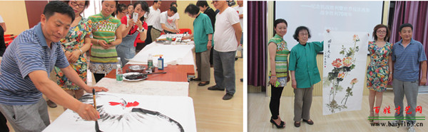 上午9點(diǎn),活動(dòng)雖未開(kāi)始,前來(lái)參加活動(dòng)的王鴻志、祝恩霜等書(shū)畫(huà)家就提前來(lái)到會(huì)場(chǎng)揮毫潑墨,他們以飽滿的愛(ài)國(guó)熱情,用手中的筆墨抒發(fā)著強(qiáng)烈的愛(ài)國(guó)情懷,那激揚(yáng)而叫絕的文字及書(shū)畫(huà),贏得在場(chǎng)的各界朋友及師生的連連稱贊。