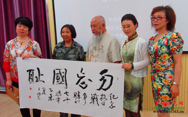 在“六一”國(guó)際兒童節(jié)到來(lái)之際 ,5月29日上午,由遼寧省鞍山市鐵西區(qū)國(guó)防教育辦公室、鐵西區(qū)文化局主辦,鐵西區(qū)共同小學(xué)承辦,鐵西區(qū)社區(qū)服務(wù)促進(jìn)會(huì)書(shū)畫(huà)工作委員會(huì)協(xié)辦的《“勿忘國(guó)恥,共圓中國(guó)夢(mèng)”——紀(jì)念反法西斯抗戰(zhàn)勝利70周年社會(huì)各界人士參加的愛(ài)國(guó)主義進(jìn)校園》主題活動(dòng),在鞍山市共同小學(xué)綜合教學(xué)樓內(nèi)隆重舉行。參加此次活動(dòng)的有主辦、承辦及協(xié)辦方的領(lǐng)導(dǎo),知名書(shū)畫(huà)家及各新聞媒體的記者,共同小學(xué)的部分師生也參加了此次活動(dòng)。