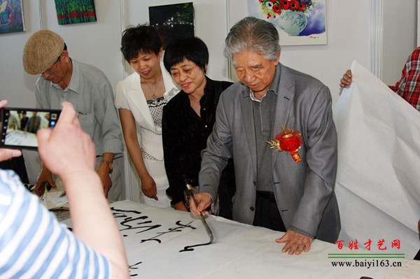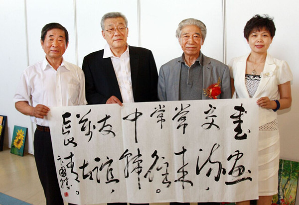 老領(lǐng)導(dǎo)為畫展題字,與韓方代表合影