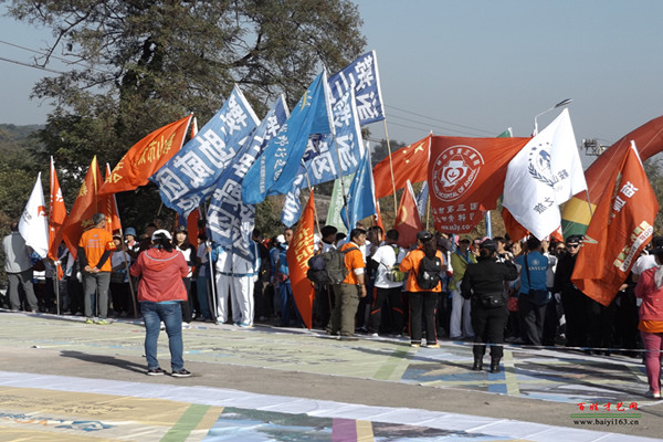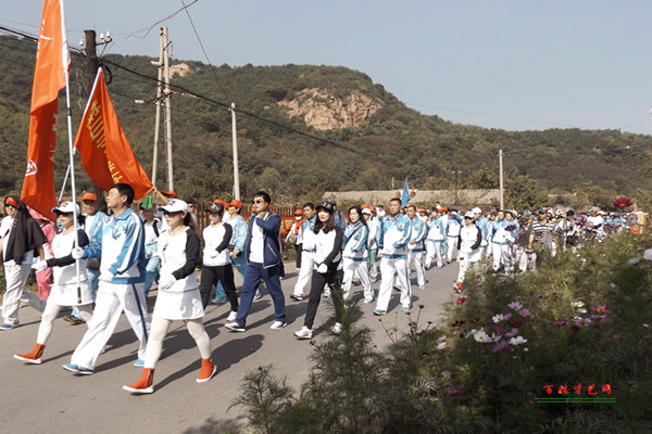 上午10:00群眾性登山活動和越野比賽正式開始,活動邀請國外登山愛好者和省內外高校留學生,東北地區及全國各地登山戶外運動俱樂部及戶外群體,并招募鞍山及周邊地區戶外俱樂部和群體成員參加志愿服務。來自全國各地登山愛好者及鞍山本地市民共10000人參加啟動儀式,遼寧省16支代表隊共500人參加專業項目的隊員參加啟動儀式。在眾多隊伍中,一只隊伍特別引人注目,他就是來自鞍山鐵西的步履先鋒“楓之隊”。在隊長佟宇輝的精心組織下參加了本次活動,隊員親切稱呼他“二輝”隊長。這只隊伍已經成立了七年多,全體隊員無論寒暑,每天堅持在永樂公園鍛煉,經過“二輝”隊長和一些骨干力量的努力,帶動了更多的人加入到這一全民健身的行列中,今天“楓之隊”一百四十多人的隊伍在本次活動中,異常醒目,形成了一道亮麗的風景線。