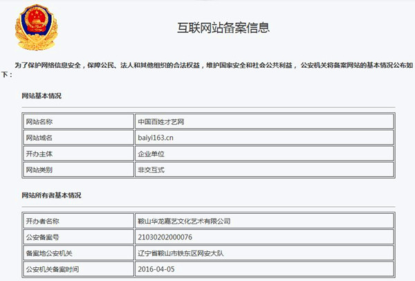 《三》百姓才藝網(wǎng)在全國公安機(jī)關(guān)互聯(lián)網(wǎng)站信息備案