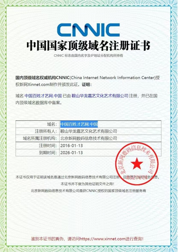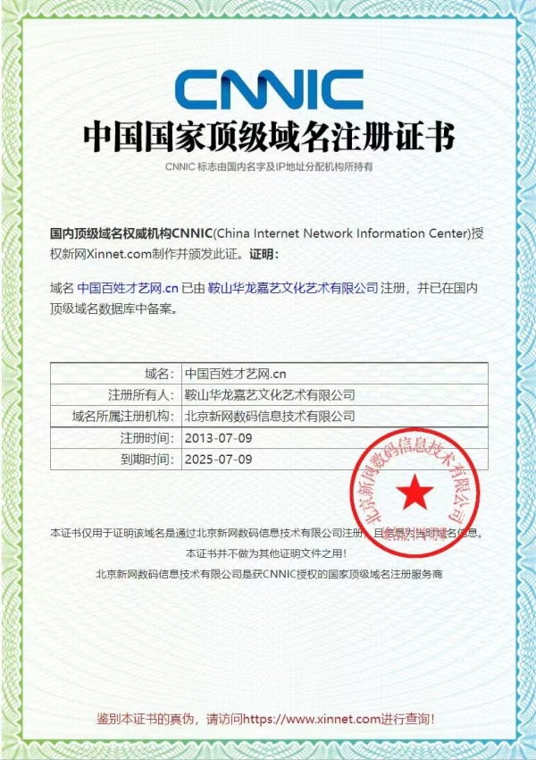 著作權(quán)人:鞍山華龍嘉藝文化藝術(shù)有限公司
