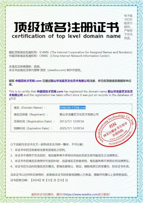《一》百姓才藝網(wǎng)在國家工信部獲得域名證書