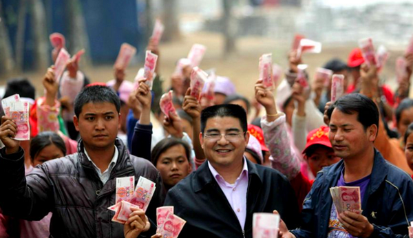 2013年12月26日,陳光標(biāo)用16噸重人民幣百元鈔、共約15億元堆成墻助推經(jīng)濟大普查。