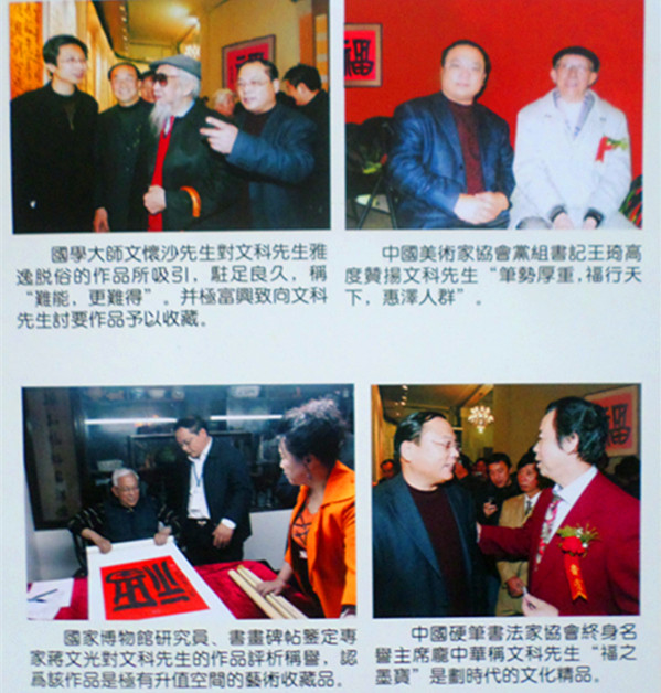 李文科先生1955年9月出生,研究生學(xué)歷,現(xiàn)住遼寧省海城市。生于海城一中醫(yī)學(xué)世家,書香門第,他的祖父輩為一方名醫(yī),且對書畫擅長。他是中國書協(xié)會(huì)員,中華詩詞學(xué)會(huì)會(huì)員,遼寧省書協(xié)理事,中國百姓才藝網(wǎng)書畫院理事,海城市書法家協(xié)會(huì)名譽(yù)主席、海城市文聯(lián)名譽(yù)主席,海城市美術(shù)家協(xié)會(huì)名譽(yù)主席,墨耕堂畫院院長。被書法界稱為:以“福”為伴的書法家李文科。請看《時(shí)代周刊》訪談李文科的一段話。