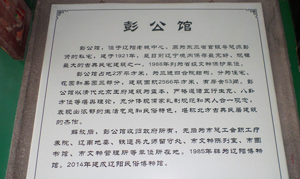 民俗博物館是遼陽市“十二五”重點文化項目,從2011年開始籌建,通過多種方式征集民俗展品380件。經(jīng)多次組織專家論證和征求社會各界意見,最終形成內(nèi)容設(shè)計方案和形式設(shè)計方案。遼陽民俗博物館是遼陽市“十二五”重點文化項目,從2011年開始籌建,通過多種方式征集民俗展品380件。經(jīng)多次組織專家論證和征求社會各界意見,最終形成內(nèi)容設(shè)計方案和形式設(shè)計方案。該館將于2014年5月18日正式向廣大市民免費開放。 遼陽民俗博物館是遼寧省內(nèi)唯一建在省級文物單位內(nèi)的民俗博物館。彭公館本身就有近百年的歷史,是東北地區(qū)極具代表性的四合院建筑群。