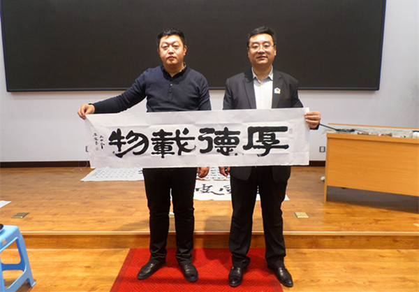 2016年11月,書法家李偉專程從甘肅來到了東北把創(chuàng)作的書法作品捐獻給當(dāng)代雷鋒郭明義,并收到郭明義贈送的書籍。