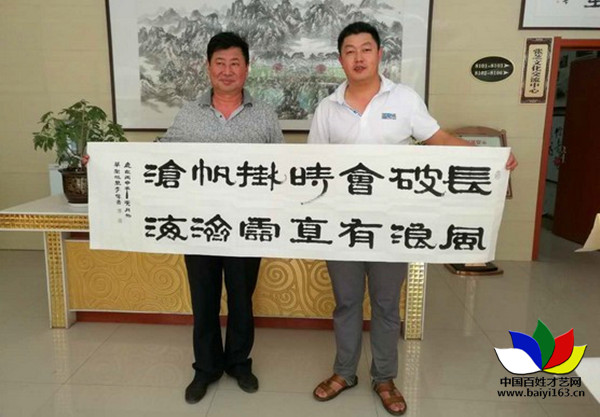 書法家李偉與百姓才藝網(wǎng)總裁邵華(右)合影