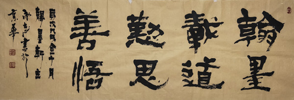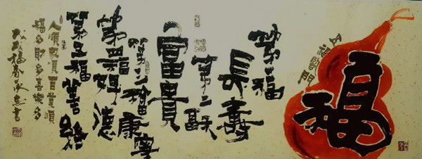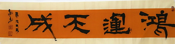 于老師的書法藝術(shù),給人印象最深的是,他將隸書、篆書、漢簡融合了一起。也就是說,幾十年來,他在書法藝術(shù)這條長河歷練之中,曾苦苦地將隸書、篆書、漢簡,一定是下了一番苦功。字里行間,筆筆透漏著綜合功力。