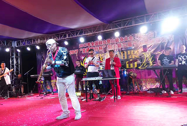 百姓才藝網(wǎng)鞍山站(邵華/文 成明/攝影)2010年9月28日晚上6點(diǎn),百姓才藝網(wǎng)在遼寧省鞍山市立山孟泰公園舉辦“慶國(guó)慶 迎中秋網(wǎng)上星光大道”公益演出大型文藝活動(dòng),第13個(gè)節(jié)目是薩克斯演奏《回家》,表演者就是寇藝。他一上臺(tái),酷美的服飾格外引人注目,以及寇藝?yán)蠋煹乃_克斯演奏和表演風(fēng)格,吸引臺(tái)下觀眾掌聲雷動(dòng),叫好連連。由于他表演魅力打動(dòng)現(xiàn)場(chǎng)所有觀眾,無奈之下,節(jié)目主持人安排寇藝?yán)蠋熡盅葑嘁磺逗V畱佟?。這一場(chǎng)演出,鞍山市這座被譽(yù)為”祖國(guó)鋼都”的老工業(yè)基地鋼城寇藝這個(gè)名字傳開了,很多人拜師學(xué)藝。