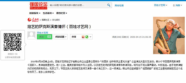 寇藝的薩克斯演奏情懷_百姓才藝網(wǎng)