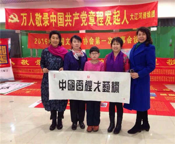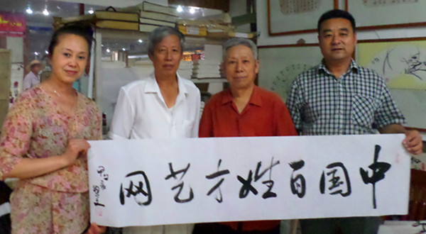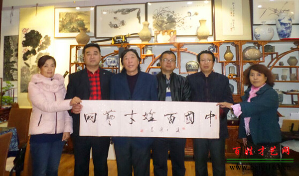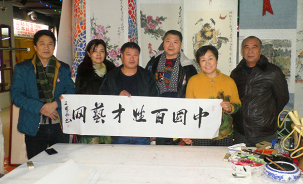 29、畫家王國華(左三)為百姓才藝網(wǎng)題字