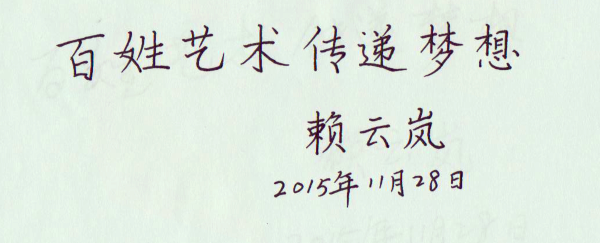26、女高音歌唱家、國家一級演員賴云嵐為百姓才藝網(wǎng)題字