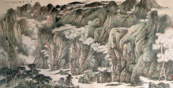 高濤認(rèn)為氣為自然萬(wàn)物生命的本體。氣之氤氳,萬(wàn)生含生,浩蕩不已,氣之升降飛揚(yáng),飄散凝聚才為風(fēng)雨、為雪霜、為萬(wàn)物之流形,為山川之融結(jié),才能呈現(xiàn)出一個(gè)多彩的大千世界。山水畫創(chuàng)作不但要畫形,更要畫氣。一幅山水畫也如同一個(gè)人,得氣則生,失氣則死。畫家藝術(shù)表現(xiàn)力的強(qiáng)弱與其對(duì)氣之本體的理解和體悟有直接的關(guān)系。因?yàn)闅獾倪\(yùn)化軌跡會(huì)直接關(guān)連到山水畫文化內(nèi)涵和藝術(shù)品位的高低優(yōu)劣。因此畫家當(dāng)由一氣蟬聯(lián),飲之太和,達(dá)于天人合一,物我兩忘之境。傳統(tǒng)畫論中所謂的“畫胸中逸氣”,吳昌碩揚(yáng)謂的“畫氣不畫形”說的就是這個(gè)道理。氣有氣勢(shì)、氣脈、氣象、氣路、氣形之說,黃賓虹先生說的山水畫應(yīng)該“留活眼、引真氣”就是說好的山水畫必須氣脈貫通,氣脈貫通是對(duì)上品山水畫一個(gè)重要的評(píng)判標(biāo)準(zhǔn)。