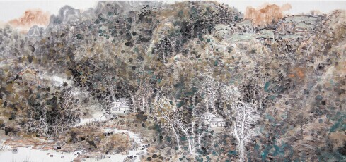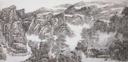 作為一位深受黃賓虹畫學(xué)和畫風(fēng)濡染的畫家,高濤一直致力于在創(chuàng)作實(shí)踐中自覺地去梳理理和氣的關(guān)系,不斷打磨,構(gòu)建自己以筆墨造型為表現(xiàn)形態(tài)的理氣虛實(shí)調(diào)理系統(tǒng)。高濤的畫風(fēng)及筆墨好尚可用“松、動(dòng)、靜、圓、清”五字概括。也就是以松生氣,以動(dòng)生力,以靜生意,以圓生渾,以清生逸。五者流衍相潤(rùn),交相輝映,相得益彰,相輔相成。正是這些元素的有機(jī)結(jié)合,才使高濤的筆下生發(fā)出一個(gè)氣息充盈,生機(jī)盎然,雄渾闊大,清淡雅逸的山水佳境,最終能夠闖入一個(gè)隱含清新意蘊(yùn)的風(fēng)光無限的山水畫藝術(shù)領(lǐng)域。高濤的山水畫常常是大面積布?xì)狻⒉继摗⒉枷螅撝星髮?shí),實(shí)中求虛,虛中有象,象中有虛,化虛為實(shí),虛實(shí)照應(yīng)。為此,他用筆無忌,用墨大膽。濃墨、淡墨、干墨、濕墨、甚至重墨、積墨、宿墨,不拘一格,咨意揮灑。有時(shí)筆墨凝重,渾厚華滋,取其密不秀風(fēng)的視覺效應(yīng),有時(shí)筆墨清麗典雅,在虛靜中練氣化神,在清虛中打造意境,取其疏可走馬的藝術(shù)效果。從而把氣運(yùn)化掌控到淋漓盡致的境地。高濤的畫在章法上也頗有新意,畫家并不拘泥于貫常的起承轉(zhuǎn)合的山水畫的構(gòu)圖程式,而是心隨筆運(yùn),以自然之氣為導(dǎo)引,使客體意象沉浮于一氣之中。山水畫發(fā)展到今天,經(jīng)歷了無數(shù)前賢艱苦卓絕的探索,達(dá)到了一個(gè)又一個(gè)高峰,時(shí)下又面臨多重選擇、多元發(fā)展的趨勢(shì)。高濤通過多年寒暑不輟的藝術(shù)實(shí)踐,深刻體會(huì)到,如同中外其他藝術(shù)門類一樣,中國(guó)山水畫也有自身深厚的文化傳統(tǒng)和藝術(shù)規(guī)范。中國(guó)山水畫是一門玄妙、深?yuàn)W的藝術(shù),中國(guó)山水畫新的表現(xiàn)形式和風(fēng)格面貌,只能是積學(xué)養(yǎng)之功,吸收融合外來文化因子,自然蛻化出來的。高濤經(jīng)常說,任何藝術(shù)都必須講究傳統(tǒng),講究根基,講究功夫?qū)W養(yǎng)。畫畫也是這樣。畫畫和唱歌一樣,應(yīng)該字正腔圓,韻味純厚,不能跑調(diào)。要順正脈,走坦途。要有民族性、地方性、時(shí)代性。高濤對(duì)“以理攝氣”,“因氣通幾”傳統(tǒng)繪畫理念的信仰和創(chuàng)作實(shí)踐的堅(jiān)守,是他對(duì)中國(guó)畫核心價(jià)值思考的集中表現(xiàn),體現(xiàn)了一個(gè)忠于藝術(shù)本真,堅(jiān)持藝術(shù)探索的畫家的心路歷程和社會(huì)責(zé)任。