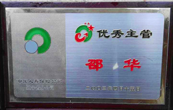 邵華:1998年2月18日加入中國人壽保險鞍山分公司,任《鋼鐵九部》營銷經(jīng)理,所轄團隊120人,團隊連續(xù)10年榮獲鞍山市優(yōu)秀團隊。邵華多次獲得遼寧省、鞍山市優(yōu)秀保險代理人,優(yōu)秀主管。挑戰(zhàn)108霸主稱號、鞍山1市08先鋒隊隊長。書寫保險文章30余篇,多次被中國保險報、鞍山日報、鞍山保險通訊報道、鞍山電視臺專訪:保險英雄邵華。