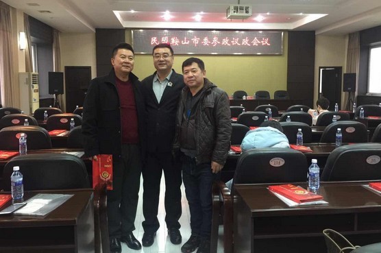 2016年12月21日上午,民盟鞍山市委召開(kāi)盟員人大代表、政協(xié)委員參政議政研討會(huì),百姓才藝網(wǎng)總編輯邵華(中)、著名畫(huà)家高濤(右)、鞍山市金普駕校校長(zhǎng)張君(左)參加本次大會(huì)。