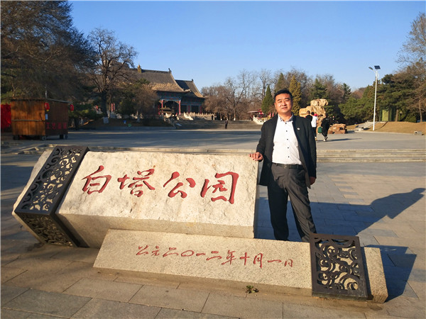 2020年4月3日,百姓才藝網(wǎng)創(chuàng)始人邵華在遼陽白塔公園。