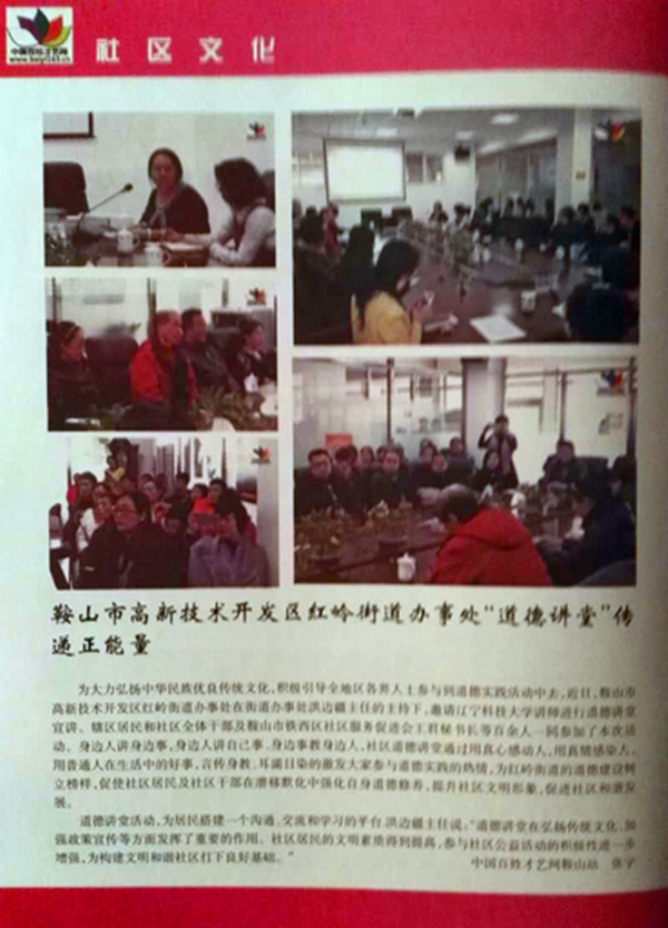 鞍山市高新技術(shù)開發(fā)區(qū)紅嶺街道辦事處“道德講堂”傳遞正能量