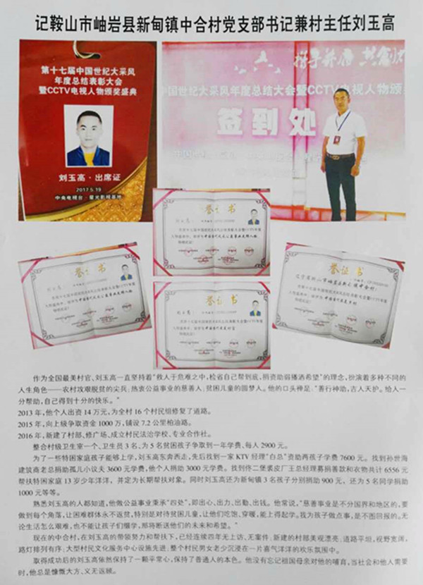 封面介紹:岫巖縣新甸鎮(zhèn)中合村黨支部書記兼村主任劉玉高