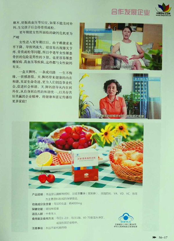 天獅營養(yǎng)高鈣沖劑(合作發(fā)展企業(yè))