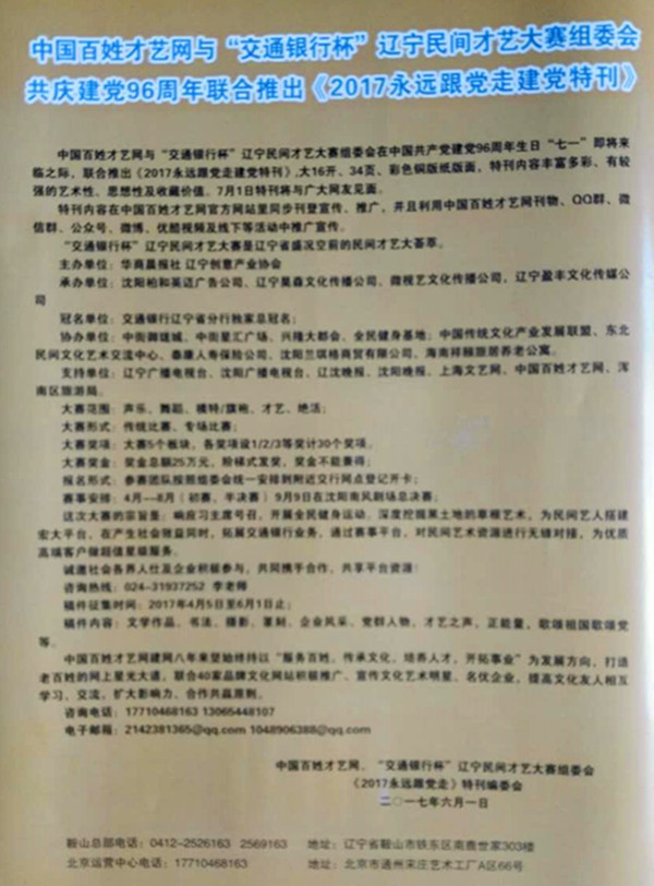 本特刊得到了“交通銀行杯”遼寧民間才藝大賽組委會的鼎力支持。