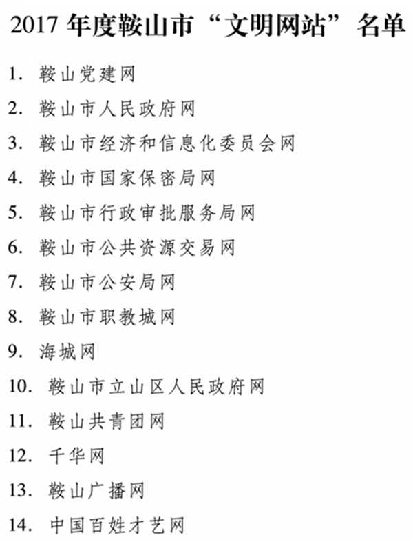 2017年度鞍山市“文明網站”名單正式出爐_ 百姓才藝網