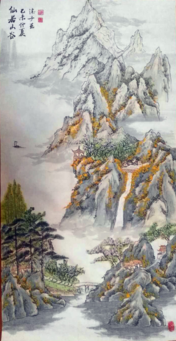 6、國畫:《仙居山谷》 尺寸:300x600
