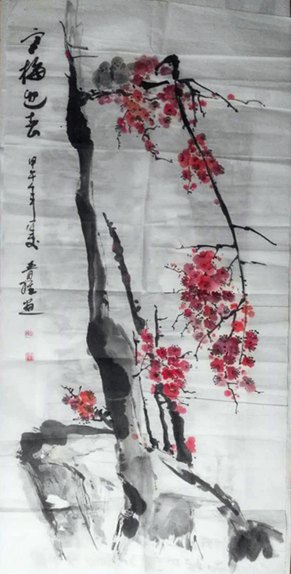 7、國畫:《寒梅迎春》 尺寸:600x1400
