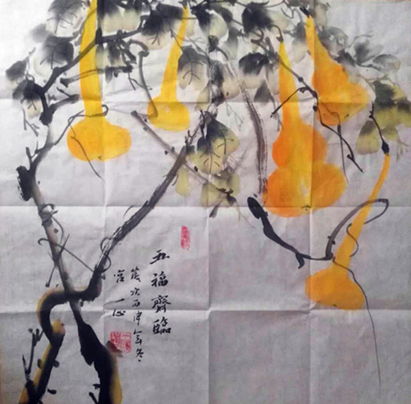 10、國畫:《五福齊臨》 尺寸:500x500