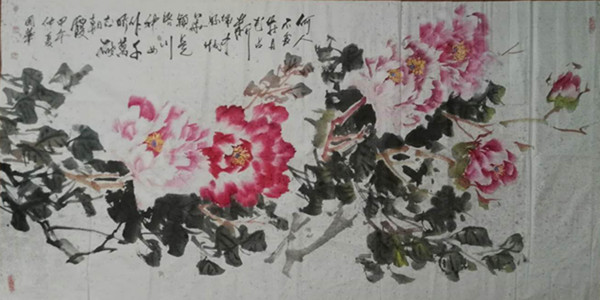 16、國畫:《牡丹花開》》 尺寸:1200x500