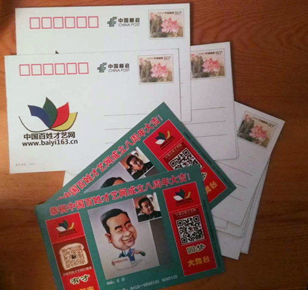 23、百姓才藝網(wǎng)成立八周年明信片數(shù)量有限,號段:百姓才藝網(wǎng)——00008,百姓才藝網(wǎng)成立八周年,2017年10月26日由中國郵政集團(tuán)公司批準(zhǔn)的郵資明信片正式發(fā)行。該郵資明信片一套一枚,國家編號:17--210302--11--0024--000,郵資圖案為映日荷花,郵資0.80元,可以郵寄到全國各地。