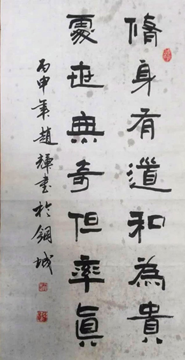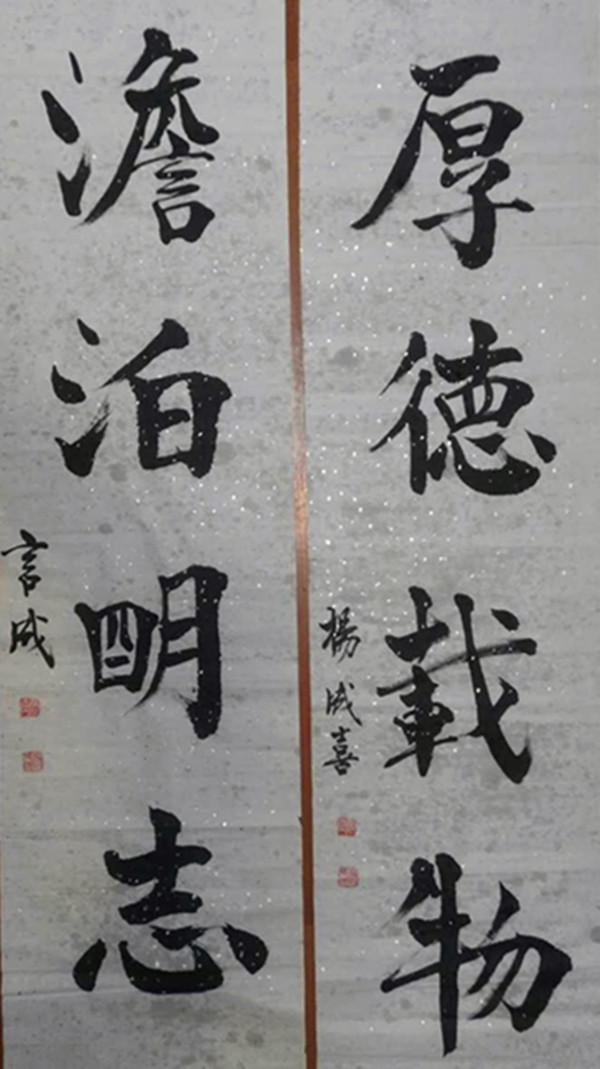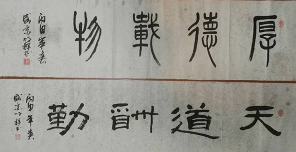 33、劉明輝書法作品兩條《厚德載物、天道酬勤》 1200x200