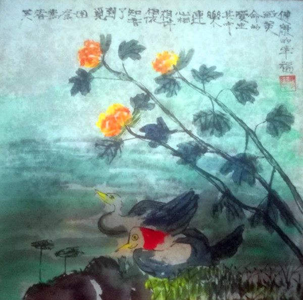 39、王洪仁的國畫《鴛鴦戲水》 尺寸:200x200
