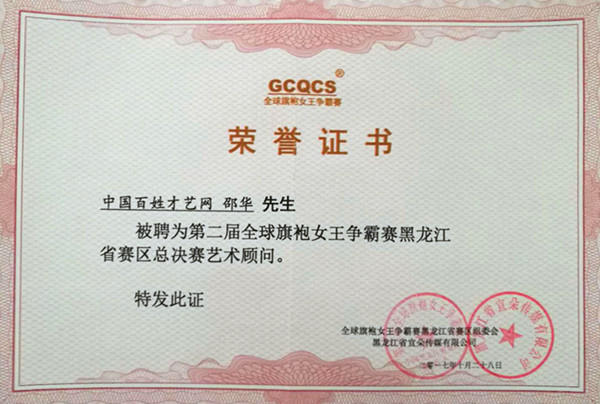 百姓才藝網(wǎng)邵華先生被聘為第二屆全球旗袍女王爭(zhēng)霸賽黑龍江省賽區(qū)總決賽藝術(shù)顧問(wèn)