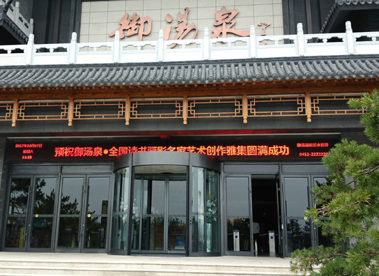 高聳曲折的速滑,激蕩人心的海浪,令人流連忘返。當(dāng)日下午,艷陽(yáng)高照,當(dāng)全國(guó)詩(shī)書畫影名家采風(fēng)團(tuán)的藝術(shù)家們來(lái)到位于鞍山路與鞍海路交口南側(cè)的“御湯泉”溫泉旅游度假區(qū)時(shí),大家發(fā)現(xiàn)這里的大型LED屏幕上打出了“預(yù)祝御湯泉?全國(guó)詩(shī)書畫影名家藝術(shù)創(chuàng)作雅集圓滿成功”的字樣,心中備感溫馨。