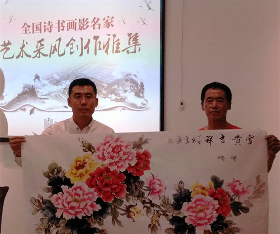 “御賜寶地千朵蓮,湯崗圣境述衷腸;泉漱瓊瑤池澄碧,妙筆生花翰墨香。”一位書畫家在當(dāng)日舉行的《家國(guó)情懷?詩(shī)書畫影頌玉泉文化論壇》上,通過(guò)藏頭詩(shī)道出了這樣的意境。書法家盧山老師題寫的“御湯泉旅游度假區(qū)”等橫幅剛勁有力;大石橋市美協(xié)副主席康志勇老師的雙馬圖、臥虎圖出神入化;一位媒體工作者用焦墨枯筆寫下了“劍膽琴心”幾個(gè)大字;來(lái)自營(yíng)口的國(guó)畫家徐慶豐老師則用一幅幅水墨蓮荷來(lái)抒發(fā)心中的祝福,來(lái)自沈陽(yáng)的董坤老師在國(guó)畫萬(wàn)花之王牡丹的周圍特意畫上了幾只辛勤的小蜜蜂,寓意滿園春色的“御湯泉”吸引來(lái)各地的藝術(shù)家來(lái)采風(fēng)創(chuàng)作,形象地反映出本次活動(dòng)與眾不同的主題與品位。