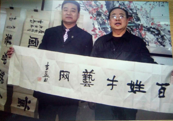 67、2010年7月,王吉盈先生(右)為百姓才藝網(wǎng)題字。