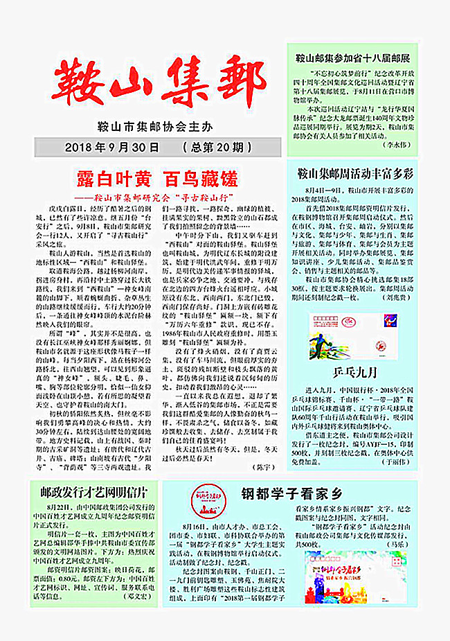 百姓才藝網(wǎng)郵資明信片登上《鞍山集郵》第一版
