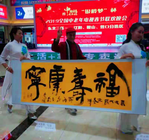 8、書畫家于承志(中男)于2018年11月7日參加了2019年全國(guó)中老年電視春晚東北遼陽(yáng)鞍山營(yíng)口分賽區(qū)活動(dòng)現(xiàn)場(chǎng)。