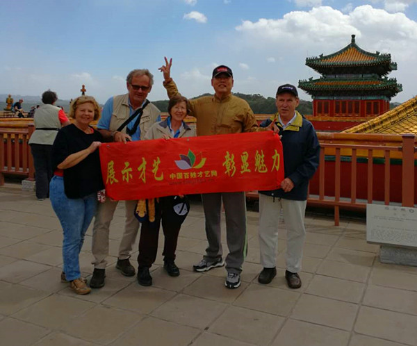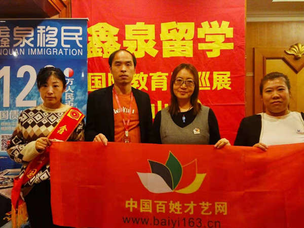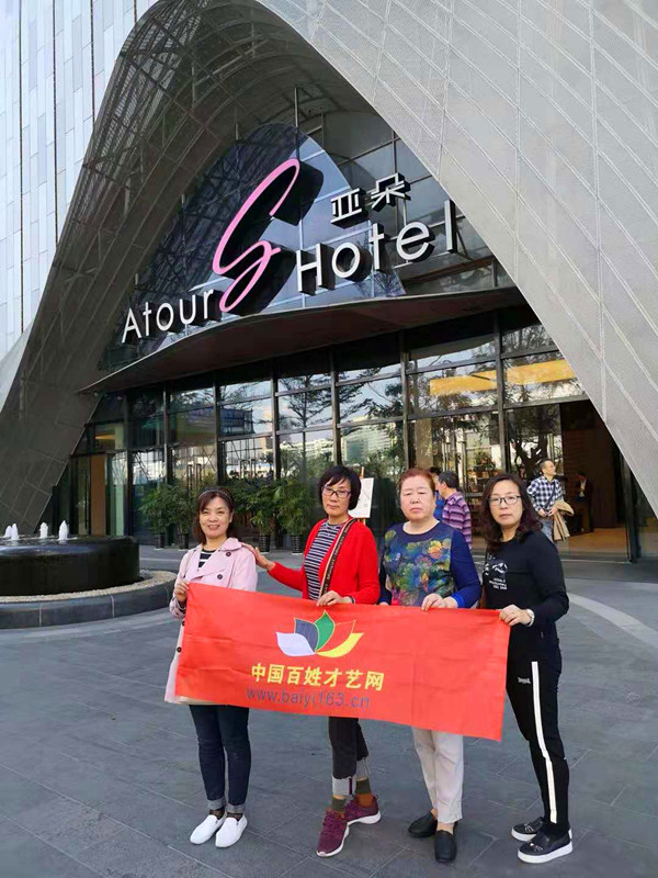 3、2018年10月27日,百姓才藝網(wǎng)百姓故事主編湯素梅欄目(右二)在遼寧鞍山國(guó)際酒店北山報(bào)道。