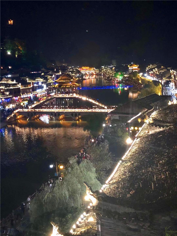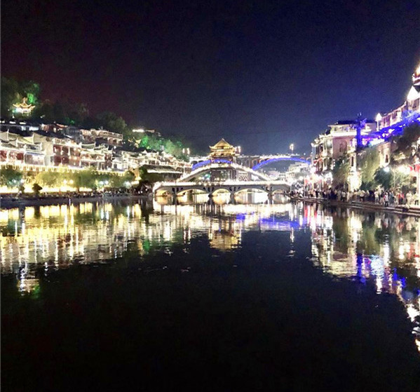 關(guān)于鳳凰古鎮(zhèn)名字的由來(lái),還有一段美麗的傳說(shuō):相傳,古時(shí)此處栽有五顆巨大的梧桐樹(shù),分別代表東南西北中五向,這些梧桐樹(shù)曾經(jīng)迎來(lái)過(guò)鳳凰棲息,所以此處命名為“鳳凰鎮(zhèn)”。鳳凰古城夜晚燈火通明,讓人應(yīng)接不暇,白天走在崎嶇坎坷的青石板上面,看著兩面臨立的徽派建筑,迎面撲來(lái)的是親切的鄉(xiāng)村氣息,感到暖洋洋,喜洋洋...