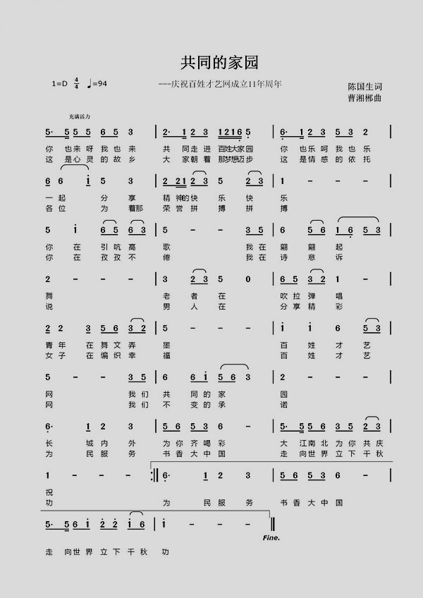 2.《共同的家園》__慶祝百姓才藝網(wǎng)成立11周年》(作曲/曹湘郴)