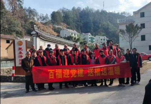 隨后,一行人去到辛亥革命詹蒙故里三港鄉(xiāng)石浦村,上門(mén)慰問(wèn)困難老黨員,為他們送上大米和食用油。老干部們將早上剛寫(xiě)就的百個(gè)“福”字和對(duì)聯(lián)送給當(dāng)?shù)卮迕瘢⑾蛩麄冎乱孕麓簡(jiǎn)柡颉@细刹總冞€參觀了位于該村的武義縣民間特色博物館辛亥革命詹蒙英烈紀(jì)念館及重走了一遍松宣古道上的紅軍之路,踏尋先烈足跡,傳承紅色基因,向革命先烈致敬,以此紀(jì)念中國(guó)共產(chǎn)黨成立100周年。