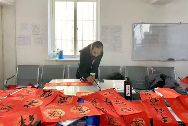 百姓才藝網(wǎng)鞍山訊(陳特/文 劉樹香/攝影)2021年2月7日下午,原鞍鋼附企公司副總經(jīng)理、裕民社區(qū)老黨員、書法家李喜林先生,在遼寧省鞍山市鐵東區(qū)和平街道裕民社區(qū),主動為在一線工作的社區(qū)工作人員、居民寫春聯(lián)送祝福,受到大家稱贊。