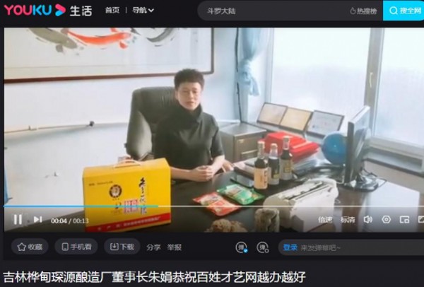 吉林樺甸琛源釀造廠董事長(zhǎng)朱娟恭祝百姓才藝網(wǎng)越辦越好(點(diǎn)擊收看)