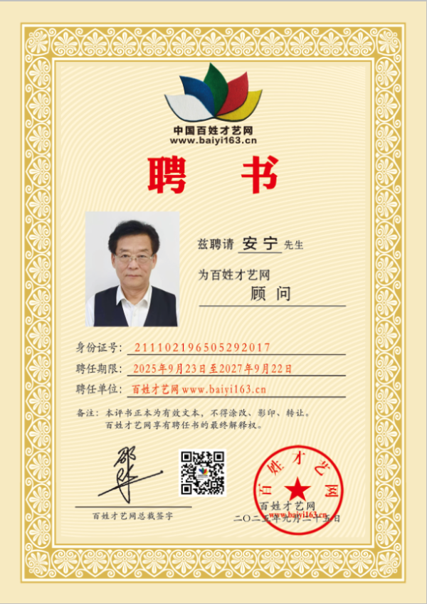 百姓才藝網顧問團:為文化藝術平臺護航的智慧力量。百姓才藝網顧問團,作為網站發展道路上的“智囊團”與“護航者”,匯聚了藝術、文學、影視、書法繪畫、新媒體等多個領域的專業力量,以深厚的行業積淀與前瞻視野,為網站的規范經營、業務拓展與品牌塑造提供全方位支撐,助力其實現“服務百姓,傳承文化,培養人才,開拓事業”的核心目標。顧問團成員涵蓋藝術領域的表演藝術家、音樂教育家,文學界的作家、詩人,影視行業的導演、編劇,書法繪畫界的知名書畫家、藝術評論家,以及新媒體運營、品牌策劃等領域的資深從業者。這種跨領域的人才結構,使得顧問團能夠精準對接百姓才藝網的多元業務需求。