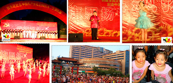 2013年7月2日晚上7點,遼寧省鞍山市鐵東區第二屆群眾文化藝術節暨創建全國文明城市系列文化活動之紀念中國共產黨成立92周年“黨旗飄揚”文藝匯演。10個以歌唱祖國、歌唱鞍山、歌唱美好生活的文藝節目。
