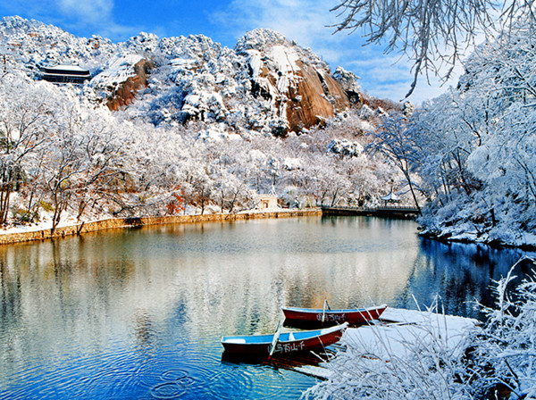 千山,位于遼寧省中部,祖國(guó)鋼都鞍山東南17公里處,總面積為125平方公里,京沈、沈大、哈大高速,京沈鐵路、哈大高鐵均從此經(jīng)過(guò)。鞍山機(jī)場(chǎng)與北京、上海、廣州通航。千山自古以來(lái)就有“東北明珠、關(guān)東第一名山、天成彌勒道場(chǎng)、東北道教圣地”之美譽(yù)。厚重的歷史宗教文化和神奇秀美的自然風(fēng)光,古往今來(lái)一直是吸引游人的人間圣地,是國(guó)務(wù)院頒布的首批國(guó)家級(jí)風(fēng)景名勝區(qū)、首批十大全國(guó)文明風(fēng)景旅游區(qū)。千山由仙人臺(tái)國(guó)家森林公園、大佛景區(qū)、天上天景區(qū)、五佛頂景區(qū)和桃花溪谷五個(gè)游覽區(qū)構(gòu)成,有景點(diǎn)400余處。千山一年四季景色怡人,春天梨花漫谷,一片雪白,香氣襲人;夏季溪水潺潺,滿山滴翠,湖光山色,變幻萬(wàn)千;秋天漫山紅葉,層林盡染,如噴焰的烈火,似燃燒的云霞;冬季則是玉樹(shù)瓊枝,白浪排空,一派北國(guó)風(fēng)光。千山宗教文化歷史厚重,源遠(yuǎn)流長(zhǎng),佛道兩教共居一山“釋道同源”。形成了“古剎隱山林,道觀筑谷間”的奇妙場(chǎng)景。九宮、八觀、五大禪林、十二茅庵等四十余座廟宇,如同璀璨的珍珠,鑲嵌在千山的奇峰翠嶺之間,構(gòu)成了一幅幅雋秀的山水畫(huà)卷。“有廟山安詳,有道水神奇”。從盛唐始創(chuàng)的千山寺廟音樂(lè)伴隨著青青大山、悠悠綠水。從歷史的深處走來(lái),1300多年來(lái)一直回響在關(guān)東大地上,深深的影響著千山宗教的發(fā)展,成為中華民族音樂(lè)中的一支奇葩。無(wú)根石、可憐松、丹鳳山上的千山巖畫(huà)記錄了八千年前新石器時(shí)期人類對(duì)日、月、星辰的圖騰崇拜。這種被考古學(xué)家稱為“天書(shū)”,敲擊或鑿刻在石頭上的圖案,穿越數(shù)千年的歷史時(shí)空,以一種永恒的神秘色彩鐫刻在人類發(fā)展的文明史上。